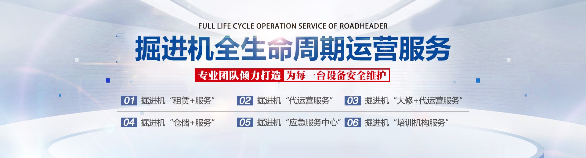 公司主營:各類型綜掘機(jī)的出租和代運營技術(shù)。配套系列服務(wù)產(chǎn)品為,供電設(shè)計、大型煤機(jī)設(shè)備裝配及井下綜掘巷道工程技術(shù)服務(wù)。